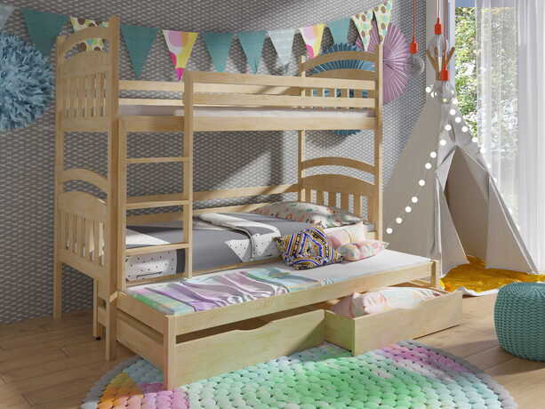 TOSIA 80x180 Trīsstāvu koka gulta + matrači TOSIA WOOD BED 80x180 + matress