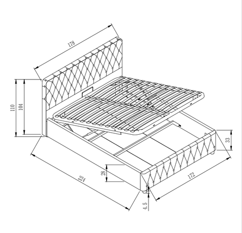 • Bed LILI  with lifting mechanism, laundry box .