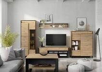 • A wide TV cabinet in a modern, loft style. The cabinet has been designed for the sake of convenient storage of multimedia equipment, CD collections, remote controls and other small items. A functional interior with two recesses, a spacious drawer and a cabinet with doors helps to keep the entire RTV zone in order.