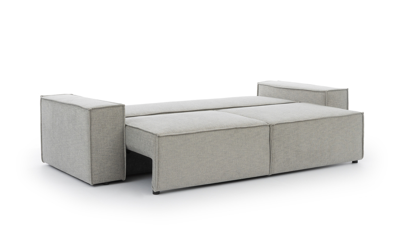 The FONDY DL sofa combines modern minimalism, functionality, and comfort. Its clean geometric form, soft lines, and refined finishing make it a stylish centerpiece for interiors ranging from Scandinavian to contemporary minimalism. Wide armrests and deep seats provide excellent comfort for everyday relaxation, while high-quality filling supports the body and helps the sofa maintain its shape for years. The key feature of this model is the DL transformation mechanism, allowing the sofa to quickly convert into a spacious and comfortable sleeping area. This makes the FONDY DL a practical solution for both daily use and accommodating guests. The neutral fabric upholstery and timeless design allow the sofa to blend effortlessly into a variety of interior styles, creating a warm and inviting atmosphere. Key features: