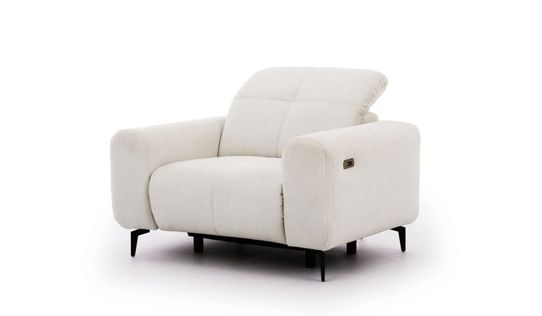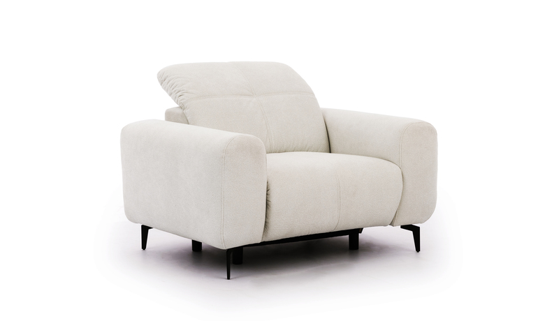 ESTE is a modern modular sofa designed for maximum comfort and a stylish living space. Its elegant shape, soft lines, and refined stitching create a harmonious and cozy look that fits perfectly into contemporary interiors. Deep seats and soft, ergonomically shaped backrests provide a high level of comfort for everyday relaxation. Adjustable headrests allow you to customize the seating position for both sitting and lounging, while the spacious corner configuration offers plenty of room for family and guests. An additional highlight is the electric relaxation function, which allows you to easily adjust the seat position for enhanced comfort. Slim metal legs add visual lightness to the design and make cleaning underneath the sofa easier. With its modern design and light textured upholstery, the ESTE sofa becomes a stylish centerpiece that brings warmth and elegance to any living room.