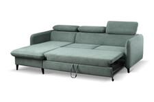 Thanks to its elegant shape, the modern Mono corner sofa fits perfectly into your interior. Movable headrests allow you to set them exactly according to your needs. Thanks to the unfolding function, it provides an area for the occasional sleepover. It will also offer storage space. Elegant high legs ensure easy cleaning under the seat. We deliver directly from the manufacturer!