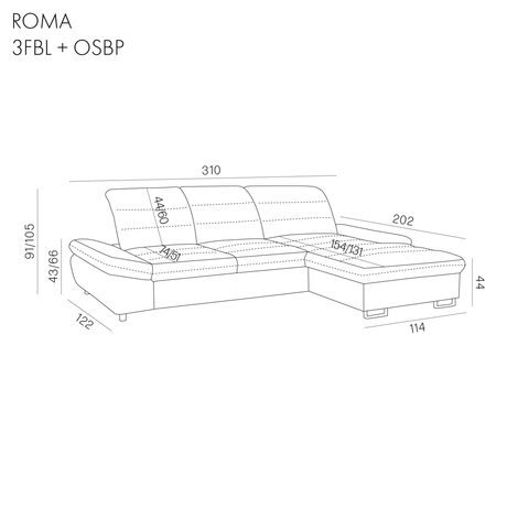 ROMA corner sofa is a functional and comfortable solution for everyday relaxation. It features adjustable headrests, sliding backrests, an adjustable armrest, and a sleeping function for added convenience.