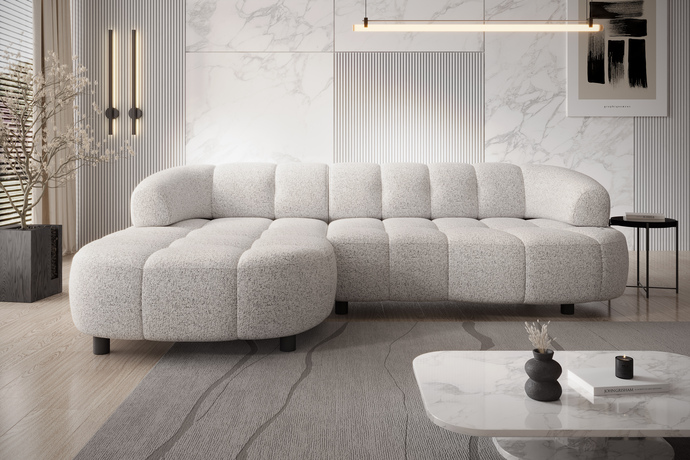 Stūra dīvāns ar noapaļotām līnijām izceļas ar mūsdienīgu izskatu un eleganci, lieliski iederoties modernisma interjeros. Dekoratīvās šuves sēdekļu daļā piešķir mēbelei pievilcību, padarot to par centrālo elementu viesistabā. Papildu priekšrocība ir elektriski regulējamais sēdekļa dziļums, kas ļauj viegli pielāgot sēdēšanas pozīciju individuālām vajadzībām, nodrošinot augstākā līmeņa komfortu.