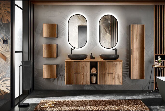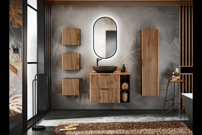 XILO BLACK WOTAN 82-100-D-2S Piekaramais vannas istabas skapītis izlietnei XILO BLACK WOTAN 82-100-D-2S