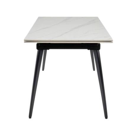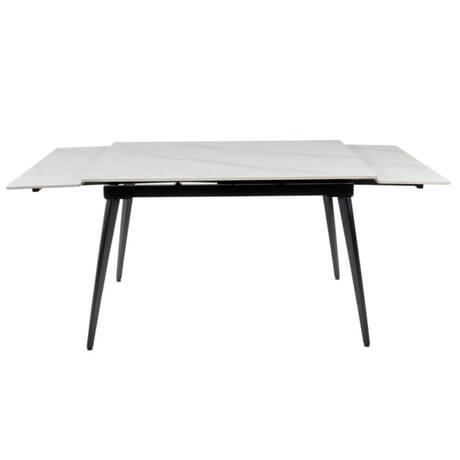 RIF galds apvieno modernu dizainu un praktiskumu. 11 mm bieza ķīniešu keramikas virsma ir izturīga un eleganta. Ar diviem pagarinājumiem (2×30 cm) galds viegli izvelkams, lai nodrošinātu vairāk vietas viesiem. Metāla rāmis ar sanding black pulverkrāsojumu nodrošina stabilitāti un mūsdienīgu izskatu. Specifikācija: