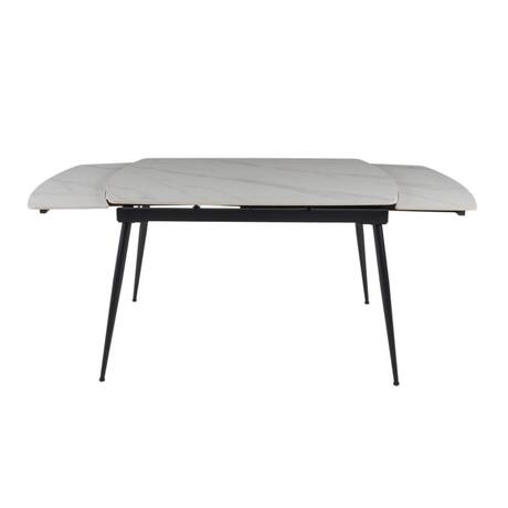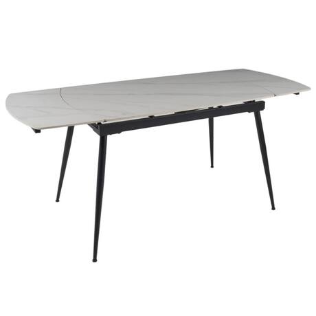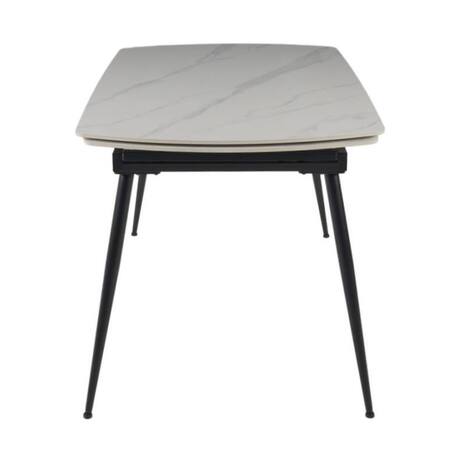 VOLA galds apvieno minimālismu un izturību. Galda virsma no 11 mm keramikas ir izturīga pret skrāpējumiem un viegli tīrāma. Ar diviem pagarinājumiem (2×30 cm) galds ātri paplašināms. Metāla kājas piešķir galdam modernu un stabilu izskatu. Specifikācija: