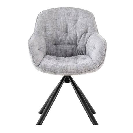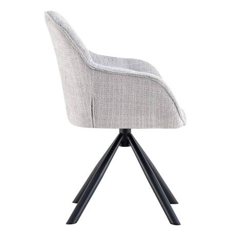 Griežamais krēsls ar roku balstiem Orea apvieno mūsdienīgu dizainu un augstu komforta līmeni. Mīksts sēdeklis ar dekoratīvu stepējumu un izturīgu auduma apdari piešķir mājīgumu un stilu, savukārt ergonomiskā forma nodrošina lielisku muguras atbalstu. Metāla pamatne ar griešanās mehānismu garantē stabilitāti un ērtu lietošanu. Lieliski piemērots viesistabai, birojam vai ēdamzonai. Specifikācija: