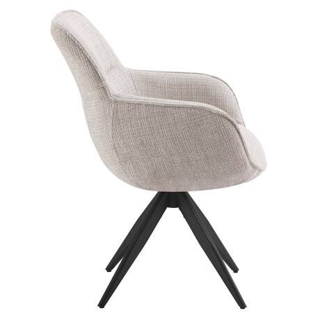 Griežamais krēsls ar roku balstiem Tur  apvieno mūsdienīgu dizainu, komfortu un funkcionalitāti. Mīksts, izturīgs audums un ergonomiskas formas atzveltne nodrošina ērtību arī ilgstošas sēdēšanas laikā. Metāla pamatne ar četrām kājām un griešanās mehānismu garantē stabilitāti un ilgmūžību. Lieliski piemērots viesistabai, birojam vai ēdamzonai. Specifikācija: