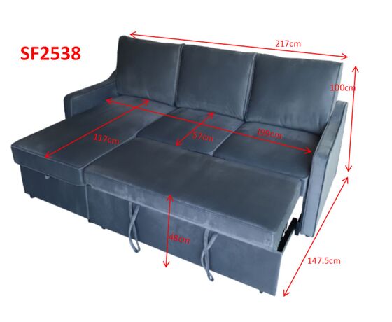 Dīvāns 3-vietīgs saliekams "Rocky" (Rocky) audums beša
