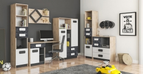 Tas aprīkots ar durtiņām, plauktiem un atvilktnēm, kuras nodrošina ērtu grāmatu, rakstāmpiederumu un citu svarīgu mantu glabāšanu.