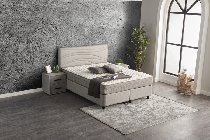 Кровать Ergo Comfort 6 с подъемным механизмом, ящиком для белья и матрасом. Роскошное и мягкое изголовье со стяжкой и мягкие боковины. Основание кровати на резных ножках. Дополнительно можно заказать ночные тумбочки, пуфик, скамейку.