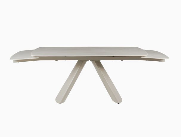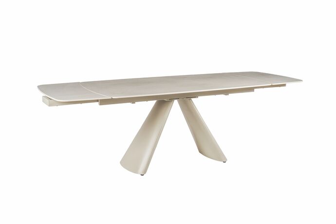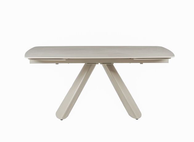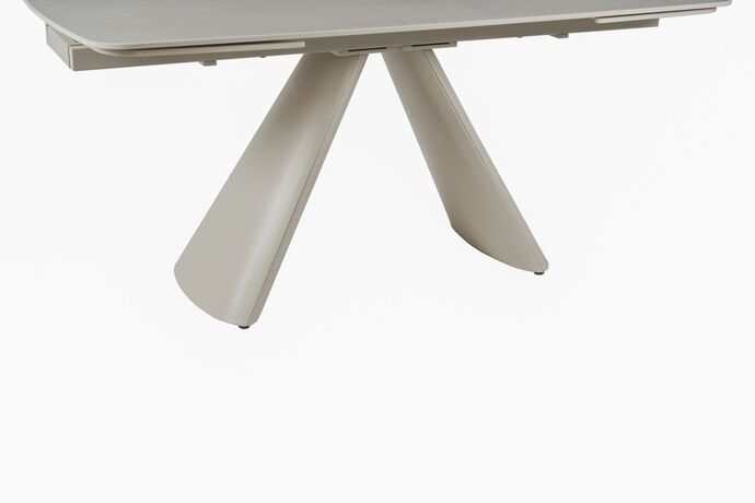 Стол CORVUS Light Travertine Matt (165–240 × 90 см) — современный и функциональный обеденный стол с прочной керамической столешницей толщиной 11 мм в матовом светлом оттенке травертина. Раздвижной механизм позволяет легко увеличить длину стола для приёма гостей. Металлические ножки с серым порошковым покрытием обеспечивают устойчивость и стильный внешний вид.