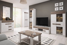 Витрина ALSKA, чей уникальный дизайн порадует покупателей, которые предпочитают современные решения в дизайне интерьера. Яркий цвет Нортленда дополняется вставкой из сонома-трюфеля, создавая единое целое, которое визуально расширяет интерьер и придает ему уникальный характер.