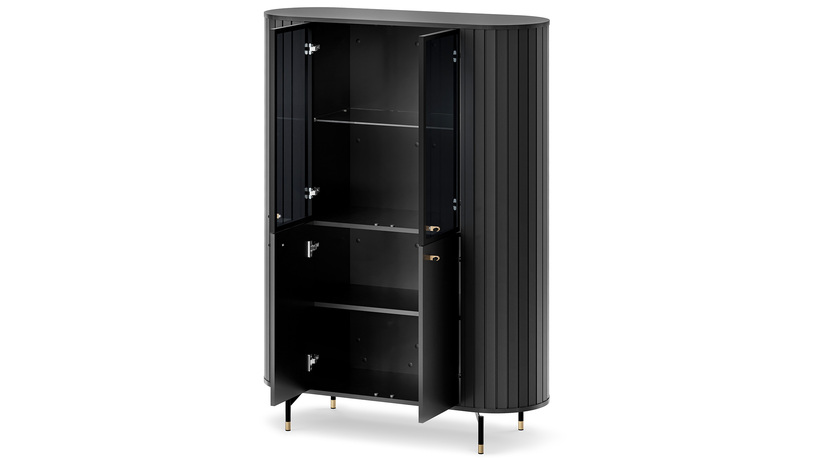Коллекция Zante — это стильное и функциональное решение для современной гостиной или столовой. Элегантный оттенок кашемир, закругленные боковые элементы из МДФ-реек и изящные черно-золотые ножки создают легкий и утонченный образ. Система включает комоды, витрины, ТВ-тумбы и навесные элементы, которые можно свободно комбинировать между собой, создавая индивидуальный интерьер. Материалы: ламинированная ДСП 16 мм, стеклянные вставки, МДФ-декор, ПВХ-кромка.