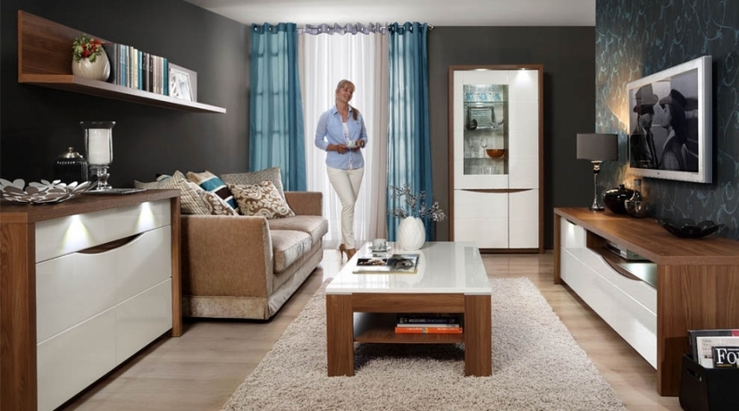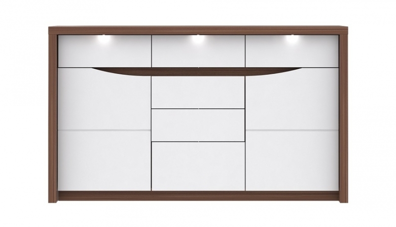 Мебель SAINT TROPEZ FORTE – оригинальная коллекция, представленная в современном стиле. Для изготовления элементов используется высококачественная ДСП. Мебель представлена в эффектом цветовом решении: белоснежные глянцевые фасады обрамляются корпусами в глубоком и теплом цвете «дуб сангалло». К главным особенностям коллекции можно отнести фигурную фрезеровку фасадов, которая выполняет роль ручек, фрезеровку в виде прямых линий, зрительно разделяющую фасады на прямоугольные сегменты, привлекательный контраст цветов и лаконичность форм элементов. Современный стиль и сияющую белизну фасадов подчеркивает подсветка, расположенная под верхней частью корпуса. Данный прием добавит любому интерьеру легкости и воздушности. Плавное закрытие выдвижных ящиков обеспечивают самодоводчики, которые так же существенно продлевают срок службы мебели. Разнообразие модулей и их высокий уровень функциональности позволят Вам создать оригинальный и уютный интерьер в гостиной или столовой.