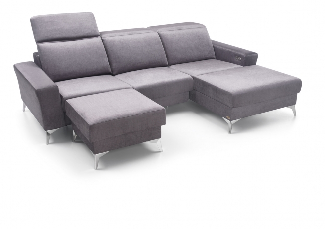 Он оснащен функцией релаксации, которая позволяет идеально подогнать электрически регулируемые три подголовника и две подставки для ног. Ножки дают легкость и предлогаются в двух отделочных материалах: металлическом и деревянном.