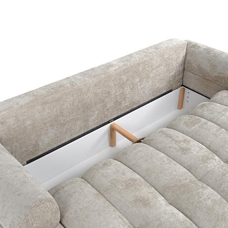 Модель оснащена вместительным ящиком для хранения постельных принадлежностей, что делает её идеальным решением для повседневного использования. Подушки спинки наполнены смесью силиконовых шариков и пены, обеспечивая мягкость и сохранение формы. Декоративная прострочка и полностью обитая задняя часть придают дивану современный и элегантный вид, позволяя размещать его в любом месте комнаты.