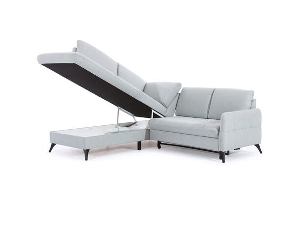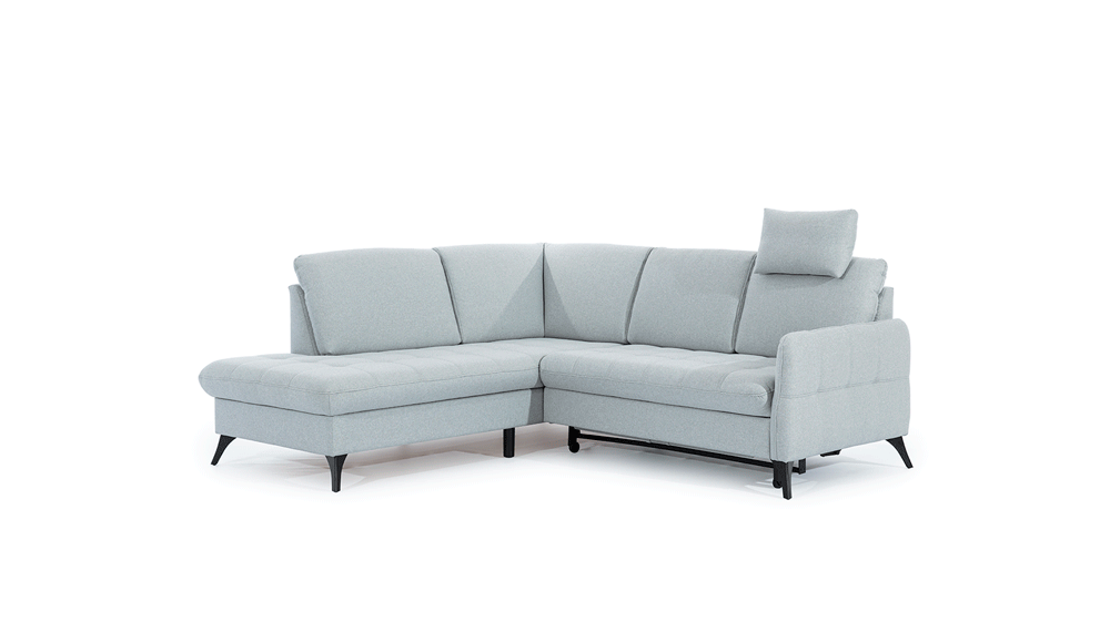 • Угловые диваны LUKKA — отличное решение для компактных интерьеров. Они оснащены функцией сна и ящиком для хранения постельного белья в оттоманке. Доступны два варианта ножек — чёрные и хромированные. Мобильный подголовник предлагается как дополнительная опция.