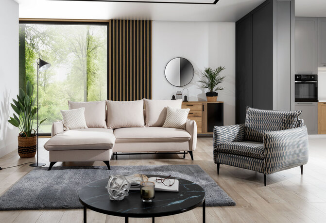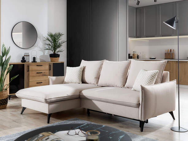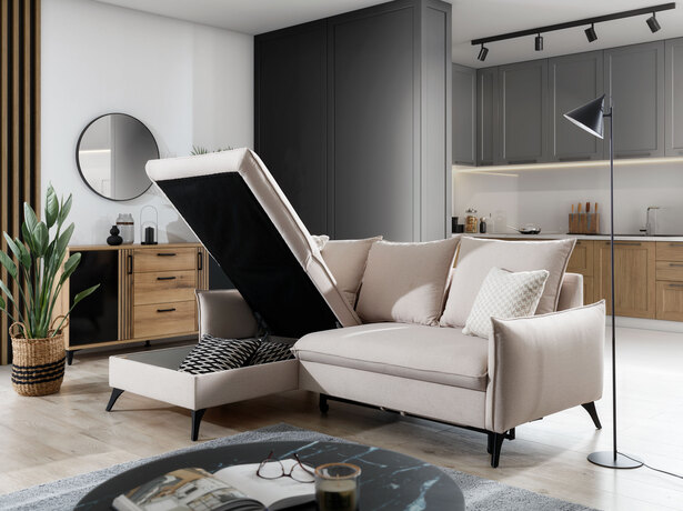 Угловой диван MODICA доступен в право- и левостороннем исполнении. Оснащён функцией сна и ящиком для хранения постельного белья. Доступны два варианта ножек.