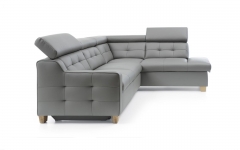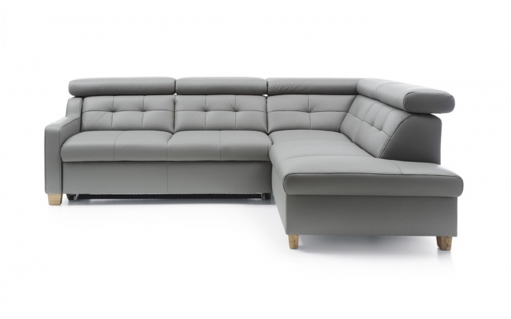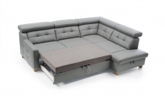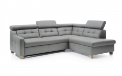 Tula – это угловой диван с интересным дизайном в традиционной форме буквы L. Данный предмет мебели привлекает внимание выразительными, геометрическими стёжками на спинке и по бокам. Подвижные подголовники повышают комфорт отдыха, обеспечивая удобную опору для головы. Данный уголок с функцией раскладывания для формирования спального места также оснащён легко открывающимся отделением для постельного белья, в которое вы можете спрятать одеяла, покрывало и подушки.