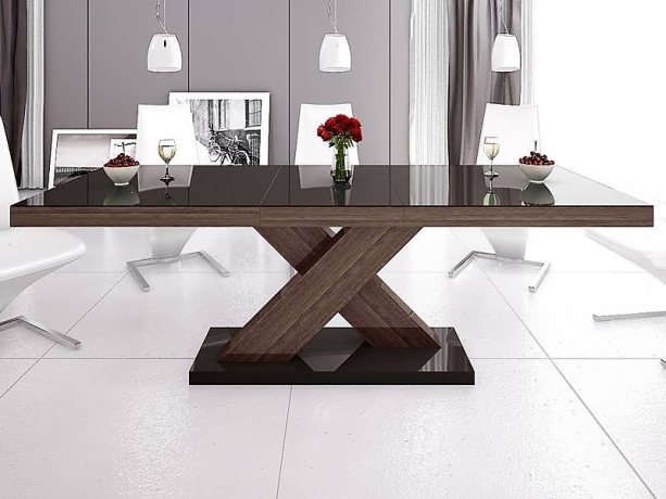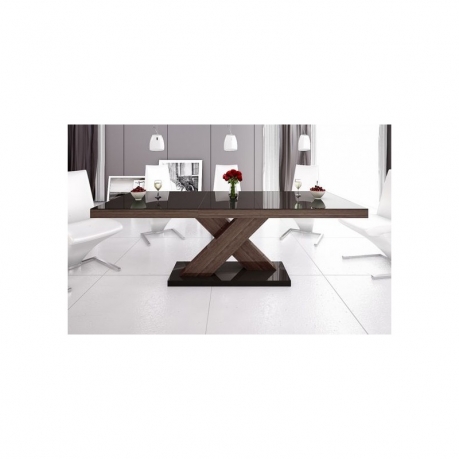 Galds Xenon. Izmērs: 160-210x75x89 cm. Materiāls: augstas kvalitātes laminētas kokskaidu/MDF plāksnes. Virsmas glancētas. Pieejami 5 krāsu salikumi: 1. Virsma un pamatne - pelēka, korpuss - balts; 2. Virsma un pamatne - balta, korpuss - melns; 3. Virsma un pamatne - melna, korpuss - balts; 4. Virsma un pamatne - Cappucino, korpuss - Sevilla; 5. Virsma un pamatne - brūna, korpuss - ozols Faro.